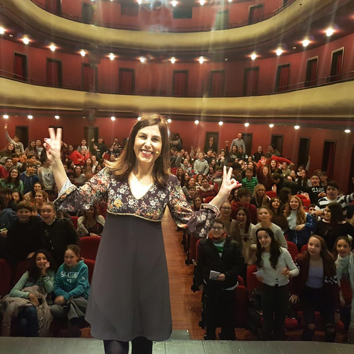 Los 324 jóvenes inscritos en este premio de lecturas voluntarias se dieron cita con la autora en el Teatre Principal de la ciudad. Los adolescentes pudieron conocer de primera mano el proceso de creación y la historia real en la que se basa «L’expedició del doctor Balmis»(Bromera) traducción al catalán de “Os nenos da varíola” (Galaxia) también publicada en castellano como “Los niños de la viruela” (Anaya).