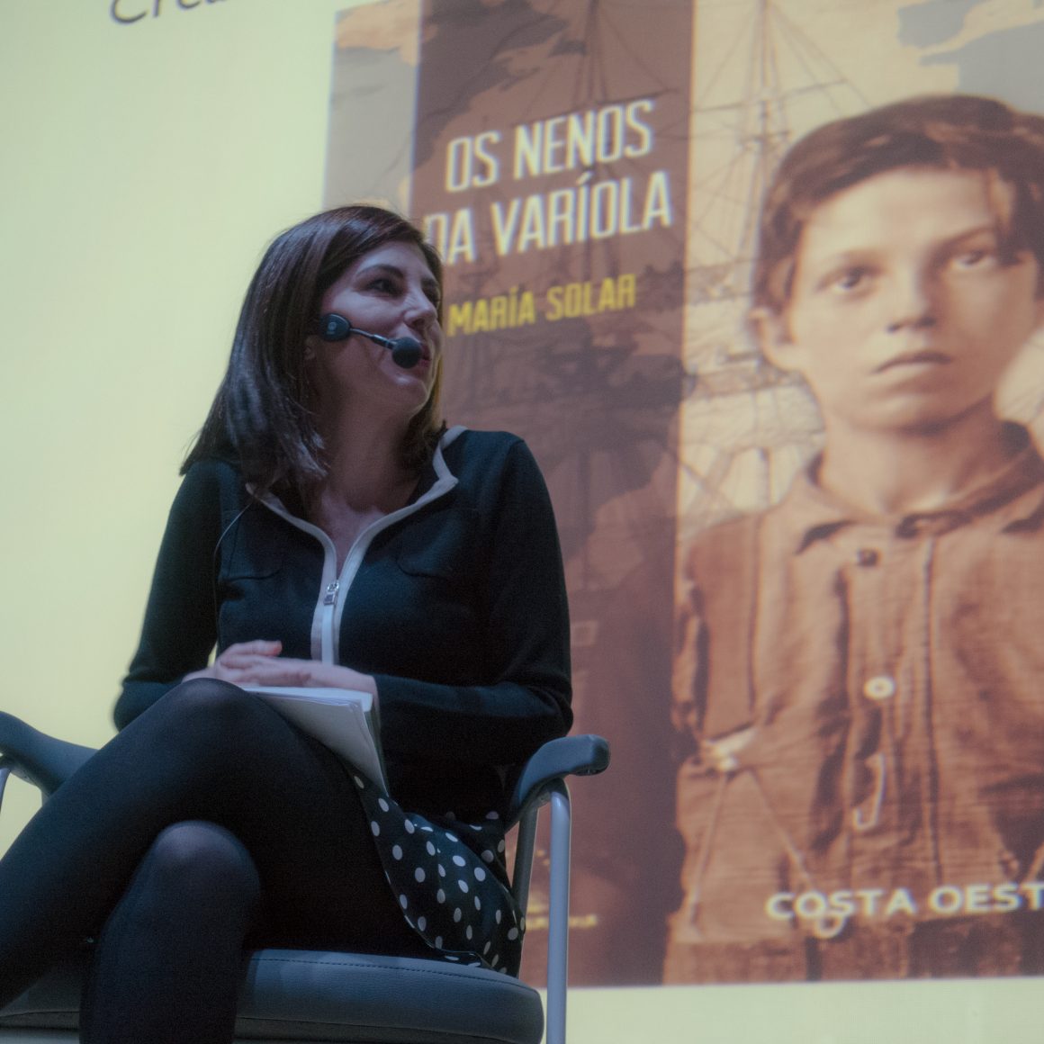 Como xa iniciara hai un par de anos nas “Charlas de literatura e ciencia” organizadas co CSIC, María Solar continua a realizar conversas sobre o libro “Os nenos da varíola” en grandes auditorios e teatros. Os actos, xestionados pola Editorial Galaxia, reúnen a máis de medio milleiro de escolares en cada cidade. A autora, tamén bióloga, conversa cos rapaces sobre a varíola, a súa historia, o proceso de documentación do libro e de escrita atravesando disciplinas como historia, bioloxía e letras nunha conversa emocionante e divertida, cargada de anécdotas que os rapaces descubriran. Neste curso escolar haberá ocasión para un par de charlas máis, aínda por fixar data.