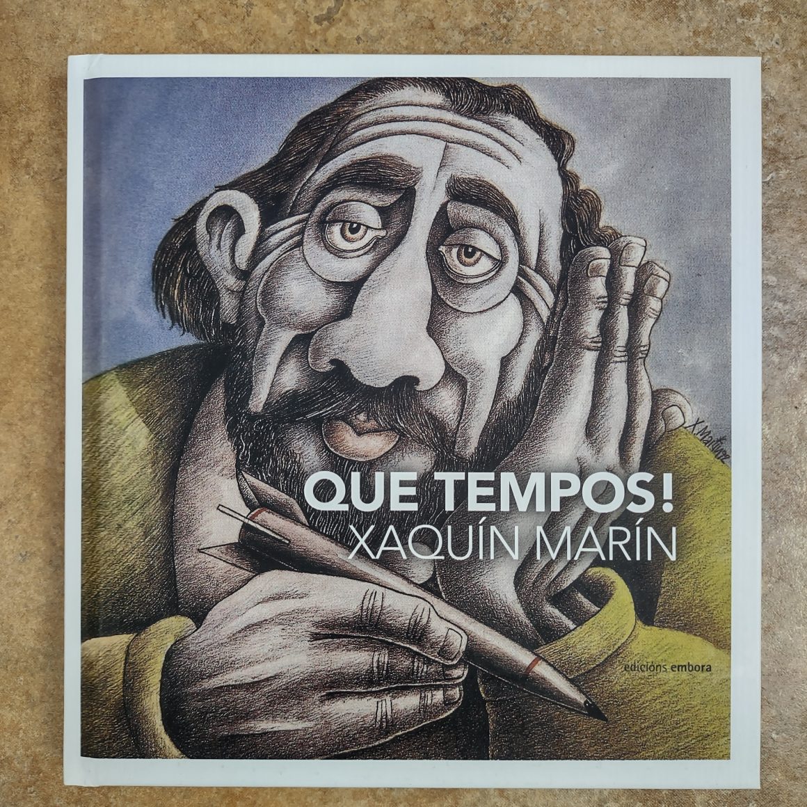 Xaquín Marín é un dos grandes viñetistas galegos de todos os tempos. A Editorial Embora reune en “Que tempos!” un conxunto dos seus debuxos publicados na revista “Tempos Novos”. Unha escolma que conta coa colaboración de diversos autores ben coñecidos como María Solar, Eva Veiga, Francisco Castro etc. que nos introducen na obra de Xaquín Marín desde o formal e o emocional. Unha escolma atemporal que retrata a realidade galega e define o xeito que ten o debuxante de estar no mundo. Unha obra gráfica monumental repleta de intelixencia, humor e amor.